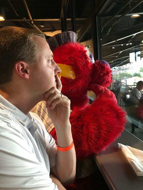 On Thursday night, Boomer and I had a date night to the Winston-Salem Dash game. After a whole year of no baseball, my hubby was excited to be back in a ballpark. He and a few other guys bought a package of tickets in the Flow Club, so we got to enjoy a buffet dinner of steak, pizza, and baked ziti, as well as all-you-can-eat hot dogs, popcorn, peanuts, and desserts. There was the threat of rain all day, but luckily there was not a single drop during the game. The clouds actually made for quite enjoyable weather. Sadly the Dash ended up losing 5-2. We will be back soon, and hopefully next time we will see a win.