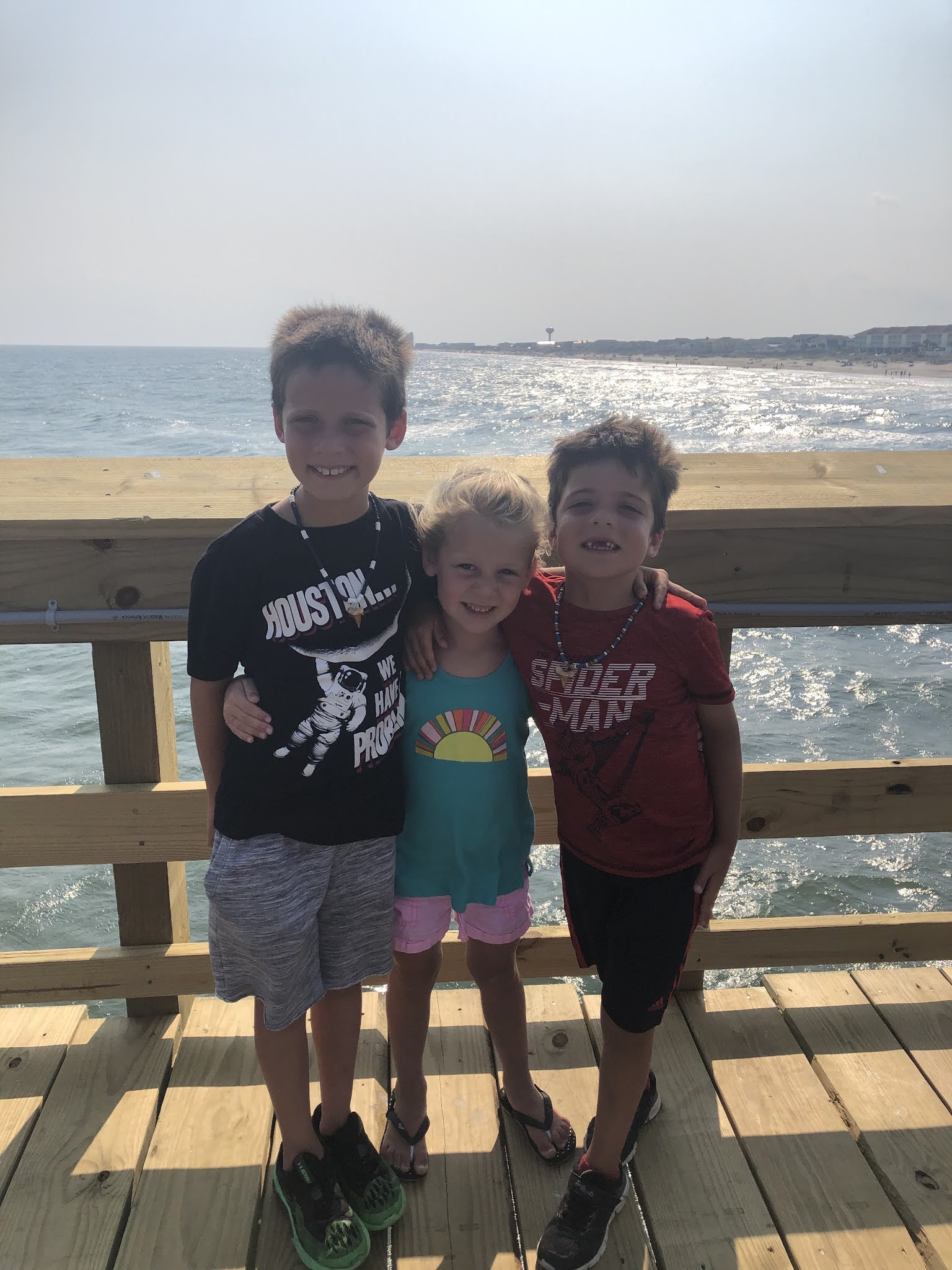 We crossed over the bridge to Ocean Isle around 4PM, and we were able to go straight to our house. While the Bakewells and Kennedys put sheets on beds, arranged luggage, and ordered pizza, the Houstons did the grocery shopping and brought a haul of food for the week. We were all settled in and eating dinner by 6PM. The kids went for a dip in the pool that evening, and Boomer and I went for a short walk after the kids were in bed. What a feeling to know there was a whole week of vacation ahead!
