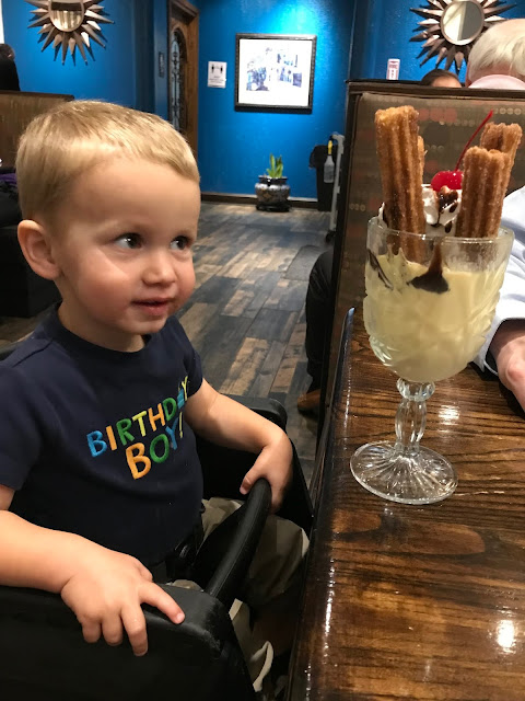 Wednesday was a much needed rest day, and it was also Emmy's birthday! When Grandpa started planning the trip over 18 months ago, it was a nice coincidence that it fall during the week of Veteran's Day (a day off from work) and during Emmy's birthday. What better way to celebrate turning 5! Boomer surprised Emmy and me both with a special video for her birthday. Much like the video he made for our 10 year anniversary, he included photos spanning the whole five years and set it the country song "Lady" by Brett Young. Of course I cried! It was so sweet to see all the pictures of our precious Emmy. Our plans for the day included a special breakfast at Chef Mickey's at the Contemporary Hotel. All the characters stopped by for pictures, and the food was delicious. The birthday girl even got some special cupcakes...cupcakes for breakfast, why not?! After breakfast, we cruised around on the Monorail, stopping at the Grand Floridian to see the gingerbread house and other Christmas decorations. Everyone took naps that afternoon, and then in the early evening, we went to Disney Springs for shopping and dessert. The kiddos received some money from Great Grandma Nancy to spend, and after much deliberation, Emmy chose a Minnie figurine and a charm bracelet. The weather was a bit rainy, so we didn't stay too long before heading back to Pop Century.