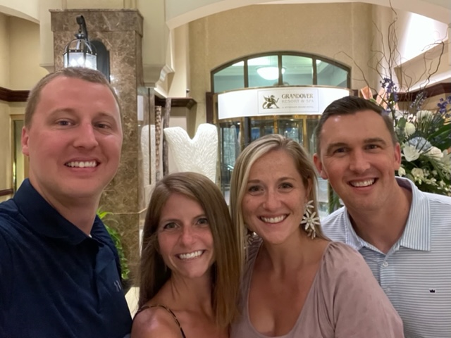 On Friday, Grammy came over to watch Emmy and Eli while Boomer and I had another adult getaway. I've felt pretty spoiled lately with all of our dates. This one was not an overnight trip, but it was a full day from about 10AM to 10PM at the Grandover Resort with the Joneses. Much like my spa day with my mom and sister, we enjoyed all of the amenities of the resort. We hung out poolside for the whole afternoon. Then we had couples massages at 5PM, followed by dinner at the restaurant on site, Di Valletta. It was a fun day of relaxation and pampering. While we were enjoying fruity drinks and fancy dinners, Grammy had a busy day of bike riding, baseball in the backyard, and then Eli's preschool open house. I hated to miss it, but since he is returning to the same school, Grammy was a great stand-in for Mommy and Daddy. She collected the newsletters and the supply list and snapped a few photos of a happy Eli. Our big boy is heading back to school on Monday, whether Mommy is ready or not!