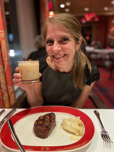 From Roanoke, it was about a 1.5 hour drive north to White Sulphur Springs, West Virginia where the Greenbrier is located. With the tagline "America's Resort," it is truly an amazing, sprawling hotel with shops, outdoor adventures, restaurants, a golf course, a casino, and other entertainment. There were times we really felt like we were in a Hallmark movie. We arrived around 1:30PM, and our room was ready, so after a quick stop to drop off our luggage, we headed to our 2:30PM carriage ride. Our driver Karl took lots of photos of us, which I greatly appreciated and Boomer endured with a good attitude :) We then went on a 30-minute ride around the resort and golf course. Karl shared a lot of history and tidbits about the Greenbrier. After the carriage ride, we returned to the check-in desk for the complimentary champagne which we missed our first time. We walked around the Main Lobby while enjoying our champagne and people watching. That evening, we had a 7:45PM dinner reservation at Prime 44 West, the steakhouse on the property named after the WVU basketball great, Jerry West. With a dress code outlined on their website, we changed out of our jeans and spiffed ourselves up to fit in with all the other guests. Beforehand, we got drinks in the main lobby: a Winter Spice White Russian for me and Apple of My Eye old fashioned for Boomer. We enjoyed our drinks by the fireplace and then made our way to the restaurant. I got the Jerry West Salad, with a 8 oz. Filet Mignon, and Boomer got the Karen's Caesar Salad (which was made table-side by our waitress) and the 20 oz. Bone-in Rib-Eye, and together we shared the famous lobster mashed potatoes, which were recommended by our carriage driver and also featured on the Food Network. Between the environment, the food, and the company, Boomer and I both said our dinner ranks as one of our top meals of all time (and most expensive!) After dinner, we took a stroll through the casino and watched the other resort guests gamble. No money spent by the Kennedys! The next morning, we had breakfast in the Main Dining Room, which again was top-notch. The time came for us to head home. Our 48-hour getaway had come to an end, but we sure packed it full with wonderful memories.