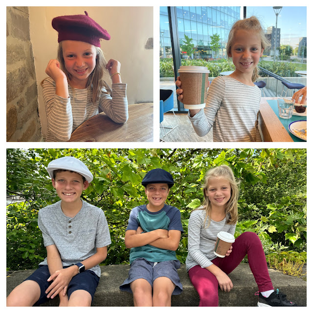 We woke up on Thursday to much cooler temperatures, and we traded out our shorts and t-shirts for long pants and jackets. Although it wasn't on the itinerary at the beginning of the trip, we decided to add in a visit to Liverpool. It was an easy 50-minute train ride from Stockport, and we arrived in Liverpool at the Lime Street station around 10:30AM. Meg and I grabbed coffee drinks in the terminal - we found we were much better at navigating with Starbucks in our hands :) We had pre-purchased tickets for a ferry cruise along the Mersey River. As we made our way from the train station toward the water, we paused along the way for pictures. There seemed to be beautiful architecture at every turn. The buildings were truly stunning, and some dated as far back as the 1700s. When we arrived at the ferry departure point at Pier Head, we discovered that all cruises had been suspended for the day due to technical issues - bummer! Our money was refunded, and we quickly made an alternative plan. We posed for some photos with the statue of the "Liverpool lads" The Beatles, and then we had lunch at the Liverpool Pub, where Boomer continued his streak of ordering fish and chips. Mom got another traditional English dish: bangers and mash; and Zack got curry chicken, which surprisingly seemed to be a popular option at a lot of restaurants. Then we boarded an open-top double-decker bus for a narrated tour of the city. The tour passed by the Liverpool Cathedral, St. Luke's "Bombed Out" Cathedral, Chinatown, and the docks. We decided that for Plan B, things turned out really well. The bus even conveniently dropped off right near the train station for our return trip to Stockport. We went back to Berretto's, and instead of ordering a full dinner, we had dessert and more Cherry Bakewell. Zander challenged Boomer to a game of chess, and he held his own against his Uncle Boomer. When we returned to the hotel, as we did the previous nights, Boomer would set up his computer for an episode of Bluey. We had trouble finding other kid options on the tv, and it did help to settle them down a bit before bedtime. At restaurants and on the various modes of transportation, the kids did so well entertaining themselves without devices or electronics. I was quite alright using a little bit of screen time at the very end of the day.