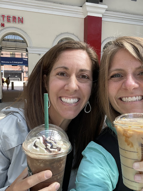 Each of the previous days led up to our big day in London on Friday. We knew that it would be the longest of our days (and the most exciting!), and we were glad to have already familiarized ourselves with the public transportation system. It was about a 2-hour train ride from Stockport, and we boarded the train shortly after 6:30AM. But first, Starbucks! After arriving by train to the London Euston station, we navigated to the Underground aka the Tube on the Northern Line to the London Bridge stop. Thanks to the tips from Amelia, our helpful train station agent, we knew to stay single file on the escalators and to move at a good pace, so as not to bother the morning commuters heading to work. Dad had pre-purchased tickets for a hop-on-hop-off bus tour, and much like Liverpool the day before, it was truly the most convenient way to see all the major attractions (...well, aside from one funny moment when I thought the bus was pulling away with Megan and me still standing on the sidewalk!) We hopped on the bus at the Tower Bridge stop, which was a short walk from the Underground London Bridge station. Along the route, we were able to see: Big Ben, Westminster Abbey, the London Eye, Buckingham Palace, Hyde Park, the Marble Arch (although it was under restoration), and St. Paul's Cathedral. There were 20 stops in total. At the Buckingham Palace stop, we were able to see the changing of the guard, which happens every day between 10:30AM and noon. We had lunch near the palace at Pizza Pilgrims. Then we shopped for souvenirs, and Emmy was thrilled to get a special wallet with "London" written on it with several of the landmarks. You will notice it in several of the post-lunch photos. After lunch, a few members of our group had trouble staying awake during the bus ride, but we roused them to walk through Hyde Park and for our last stop back at London Bridge. After we once again navigated the Underground back to the train station, we got food inside the terminal, including jumbo sized donuts from DumDum Donutterie. We arrived back in Stockport shortly before 9PM. I don't anticipate returning to London, and it was truly a once-in-a-lifetime experience. What a full, fun day!