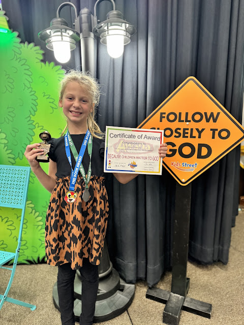 On Sunday the 18th, Awana wrapped up for the summer, and there was a special awards ceremony to recognize the children's commitment and hard work all throughout the school year. Emmy and Eli both learned a lot about God's Word; they also played lots of fun games, made cool crafts, and enjoyed our weekly ice cream afterwards. Emmy worked diligently to complete the three books of Sparks. She received the Sparkie award, along with two medals. Eli repeated the verses each week with his Awana leader, and he earned the Honeycomb award. Both kids are learning so much about Jesus, and we pray that they will soon understand salvation and come to ask Jesus into their hearts. We will enjoy the break now for the summer and then continue with Awana in the fall.