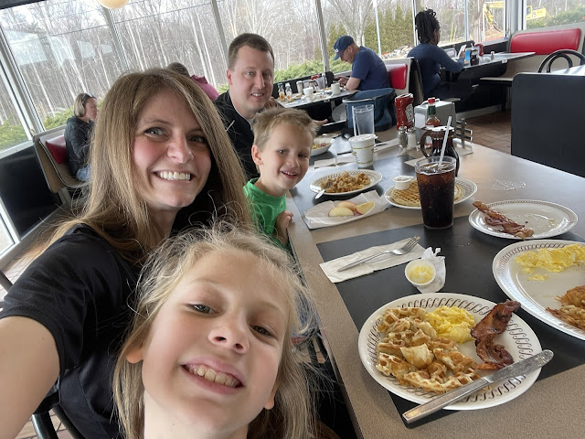 The kids had their first practices this past Saturday. With a 12PM noon practice time for Eli, we grabbed brunch beforehand at the Waffle House before spending the next three hours at the ballfield. Eli's practice is one hour, and then Emmy's lasts for two hours. On Saturday evening, we went with our Sunday School class to the Carolina Thunderbirds game. We saw some exciting action on the ice and cheered on the Thunderbirds. We stayed through the second period, with the Thunderbirds winning 4-1. However, with Daylight Saving Time pushing the clocks forward an hour, we hurried home so as not to lose too much sleep.